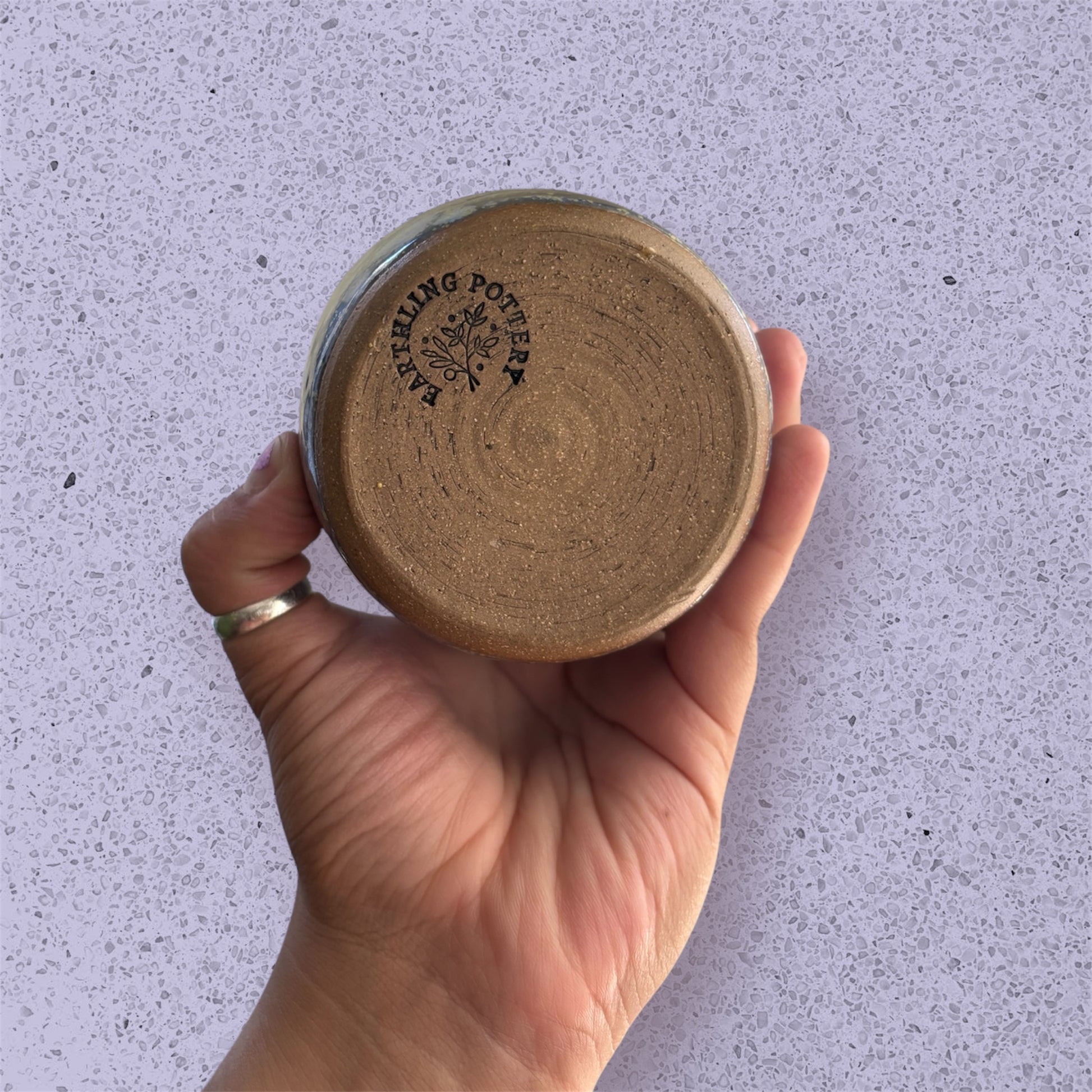 Handle-less cup for a nice-tea. Can hold approx 12 ounces of yummy drinks.